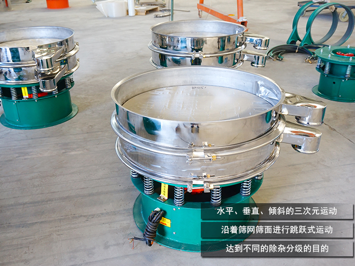 DH系列旋振篩型號(hào)齊全產(chǎn)量大,型號(hào)分為直徑400mm型、600mm型、800mm型、1000mm型、1200mm型、1500mm型、1800mm型、2000mm型等八種標(biāo)準(zhǔn)機(jī)型。篩分分級(jí)橡膠粉處理量可達(dá)400kg-2T/h,可將物料沿著篩網(wǎng)篩面充分篩分,過網(wǎng)率高篩分精度可達(dá)95%。