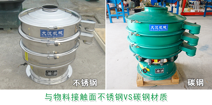 不銹鋼材質(zhì)具有良好的耐腐蝕性能和防不銹性,外表相對(duì)美觀且不必經(jīng)過鍍色等表面處理,適合大部分篩分物料接觸面要求較高的物料。