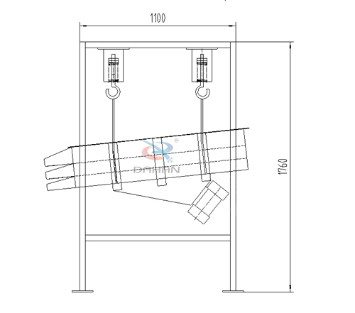 吊掛式直線振動篩分機(jī)為雙振動電機(jī)驅(qū)動。當(dāng)兩臺振動電機(jī)做同步、反向旋轉(zhuǎn)時(shí),其偏心塊所產(chǎn)生的激振力在平行于電機(jī)軸線的方向相互抵消,在垂直于電機(jī)軸的方向疊為一合力,因此篩機(jī)的運(yùn)動軌跡為一直線。兩電機(jī)軸相對篩面在垂直方向有一傾角,在激振力和物料自重力的合力作用下,物料在篩面上被拋起跳躍或向前作直線運(yùn)動,從而達(dá)到對物料進(jìn)行篩選和分級的目的。