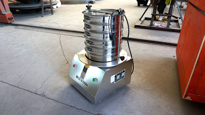 電機帶動上部振動托盤振動,由振動托盤傳導至安放在振動盤上部篩框上,然后由需要檢測目數(shù)的篩框把小于篩面網孔的物料顆粒篩分至下層篩框,一般情況下,試驗篩一次可安裝1-7層標準篩框,同時篩分出2-7個不同規(guī)格的待檢樣品。