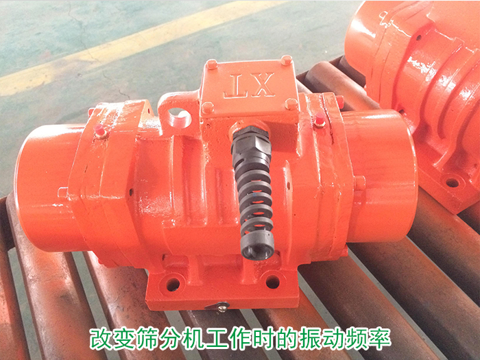 可改變篩分機(jī)工作時(shí)的振動(dòng)頻率與其自身固有的振動(dòng)頻率為不一致的頻率,可通過(guò)振動(dòng)電機(jī)改變篩分機(jī)的振動(dòng)頻率從而達(dá)到防止共振的目的。(可調(diào)節(jié)電機(jī)兩端的偏心塊夾角來(lái)改動(dòng)激振力的大小,夾角小,激振力變大,振幅變大;反之,夾角變大,激振力變小,振幅變?。?/p>