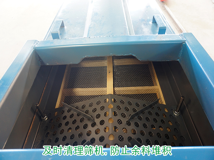 在篩分機(jī)使用過(guò)程中需要?jiǎng)蛩龠M(jìn)料不能使設(shè)備過(guò)載篩分,篩機(jī)內(nèi)部也需要時(shí)常清理,防止余料堆積,如果過(guò)載篩分也會(huì)影響篩機(jī)的振動(dòng)頻率,導(dǎo)致共振的發(fā)生。
